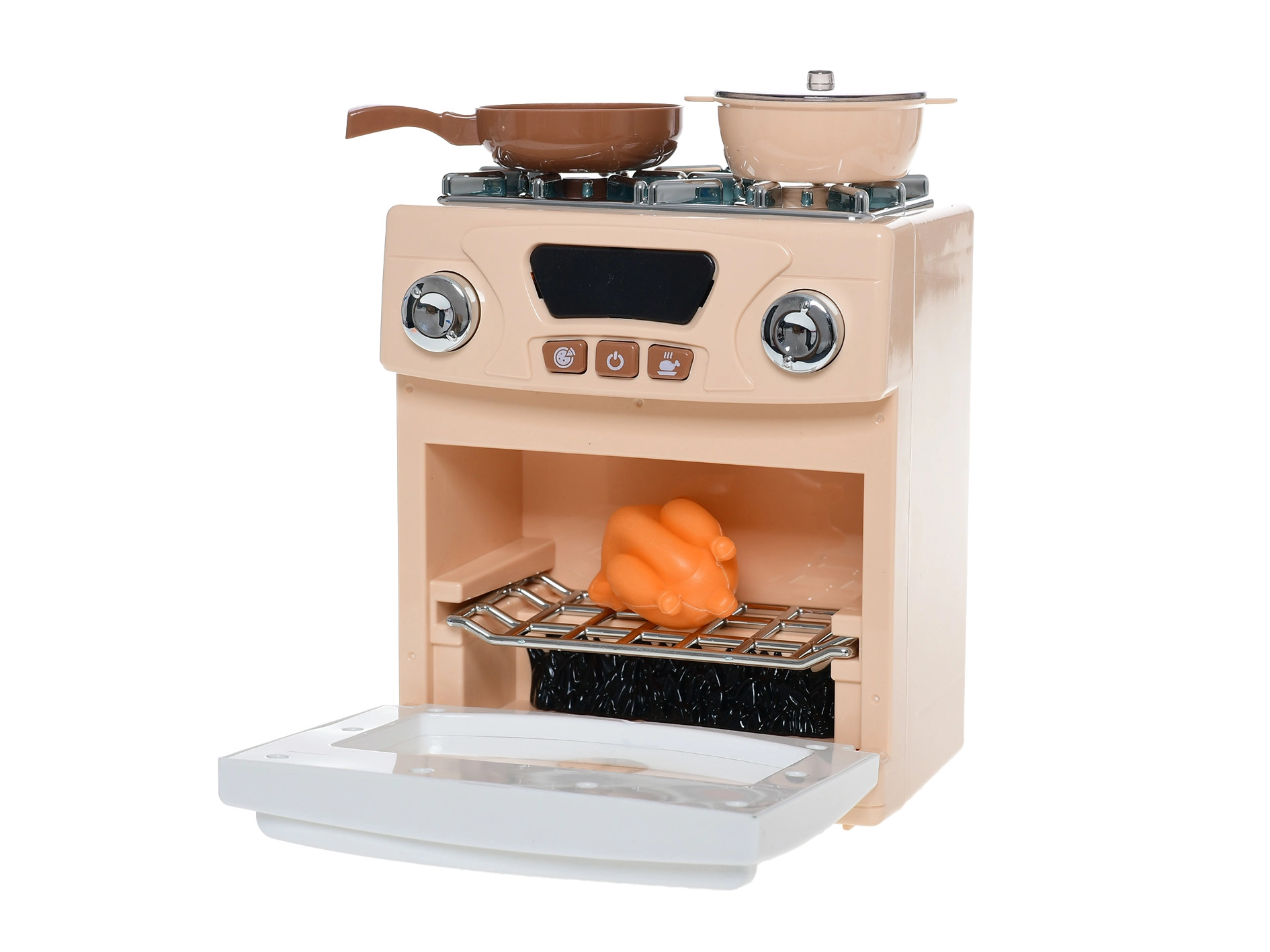 A csomag része egy praktikus főzőkiegészítő-készlet is, így a kis szakácsok már a kicsomagolás után elkészíthetik „különlegességeiket”. A kompakt, 18 × 15 × 9 cm-es méretnek köszönhetően a tűzhely könnyen elfér a gyerekszobában vagy a játszósarokban, és egyszerűen hordozható.