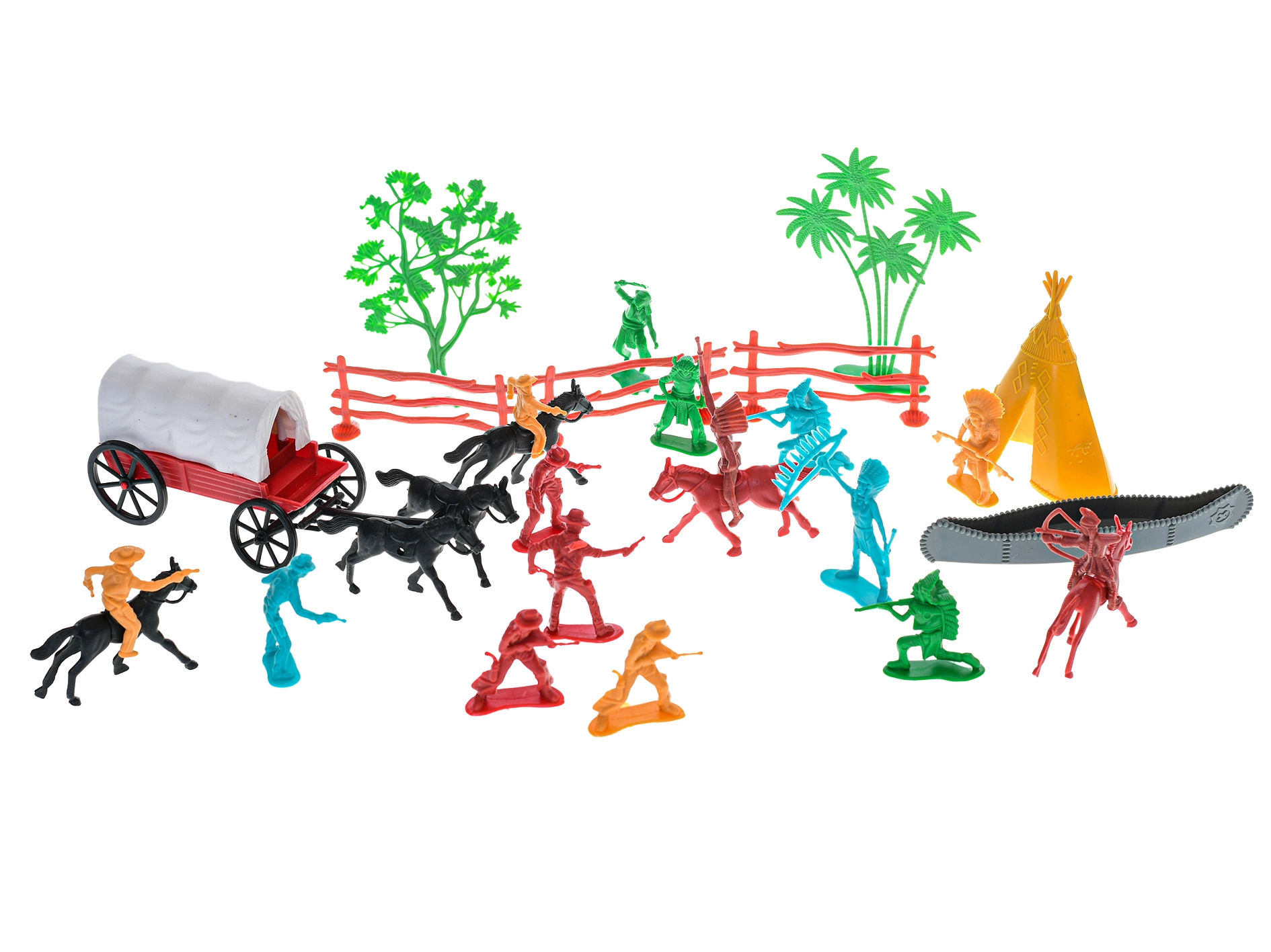Lépj be a Vadnyugat hangulatába egy készlettel, amely mindent kínál az izgalmas történetekhez: a cowboyoktól és indiánoktól a hűen kidolgozott lovakon át egészen a részletes hintóig. A figurák kompakt méreteinek köszönhetően a gyerekek könnyedén felépíthetik saját jeleneteiket otthon és útközben is. Tartós kivitel minőségi műanyagból a hosszú élettartamért és a biztonságos játékért.