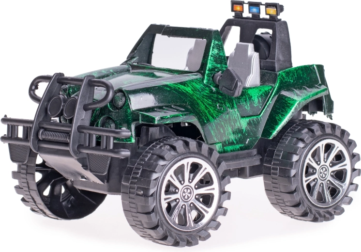Ez a terepjáró egyszerű kezelést és rengeteg vezetési élményt kínál. A lendkerekes meghajtás sima indulást tesz lehetővé elemek nélkül – ideális a finommotorika és a koordinációs készségek fejlesztéséhez. Kompakt, 17 cm-es hossza miatt könnyen elfér a hátizsákban és a gyerekek kezében is.