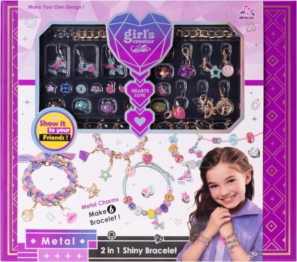 Készíts egyedi ékszereket a karkötőkészítő szettel, amely 6 karkötőhöz elegendő anyagot és stílusos fém medálokat tartalmaz, például mosolygós fejeket, szívecskéket, görkorcsolyát, rollert és más motívumokat. Az alkotás fejleszti a finommotorikát, a türelmet és a kreativitást. Minden praktikus ajándékdobozban található, ideális ajándék kis parádésoknak és alkotó kedvű gyerekeknek 5 éves kortól.
