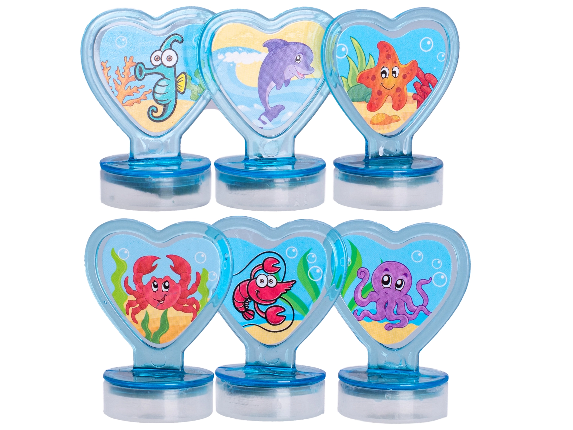 Fedezd fel a kreatív szórakozást a Tengeri világ pecsétkészlettel! Ez a 6 darabos, vidám tengeri állatos mintájú műanyag pecsét fejleszti a fantáziát és a finommotorikát. A 2 cm-es átmérőnek köszönhetően jól illik a gyerekek kezébe, és ideális alkotáshoz otthon és útközben is. Két színben elérhető – kék és rózsaszín.