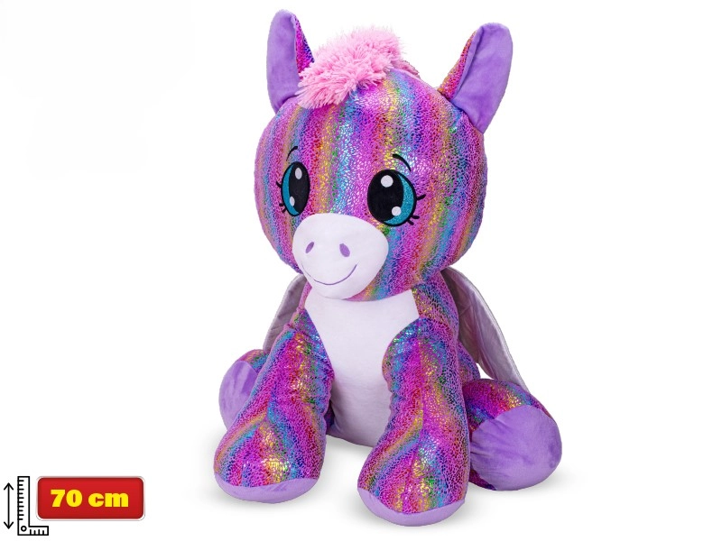 A Star Sparkle plüss pegazus elbűvölő és selymesen puha kedvenc, amely a gyerekek és a szülők szívét egyaránt meghódítja. Finom plüss anyagának és minőségi kivitelezésének köszönhetően tökéletes a mindennapi ölelgetéshez, játékhoz, illetve mint stílusos elem a gyerekszobában. A csillogó részletek és a finom színek felébresztik a fantáziát és támogatják a kreatív játékot.