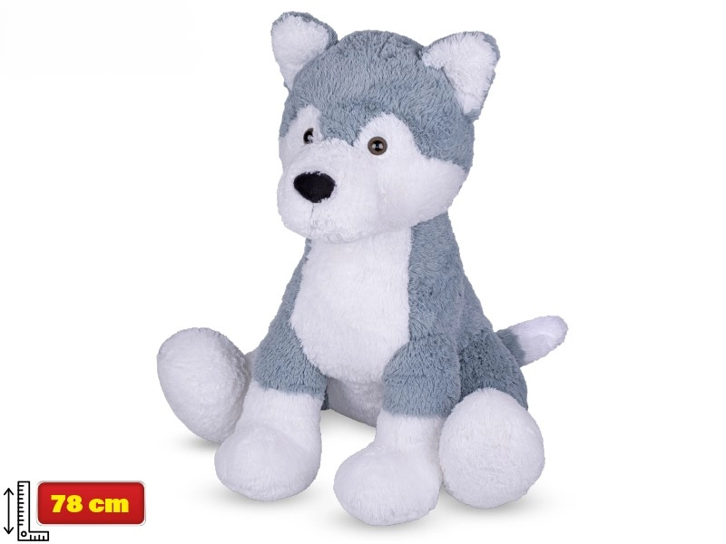 Nagy, ölelni való kedvencet keres, amely már az első napoktól örömet szerez a gyerekeknek? Ez a 78 cm magas plüss husky kutya valósághű szürke-fehér kivitelben készült, gyengéd ölelésekhez és a gyerekszoba díszének egyaránt. A pihe-puha, selymes felület és a gondos kidolgozás maximális kényelmet és biztonságot nyújt a mindennapos használat során.