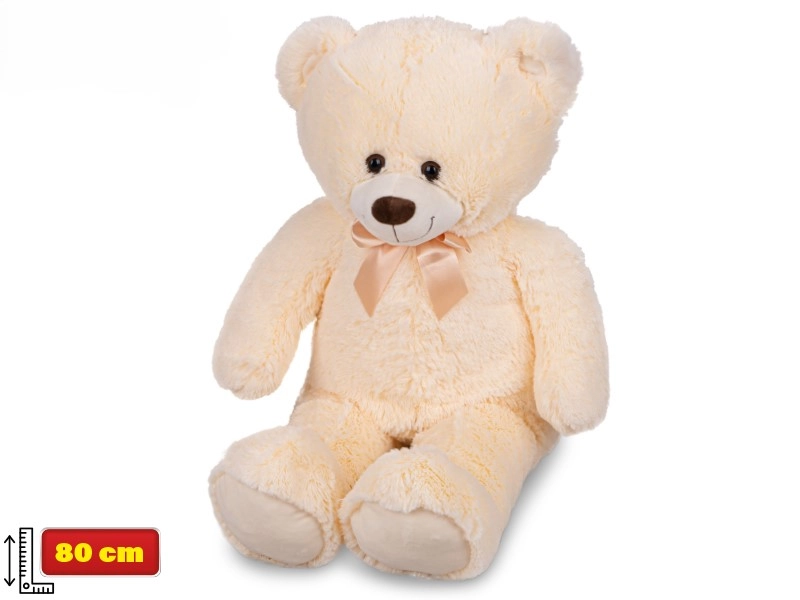 Aranyos, 80 cm-es plüss mackó semleges bézs színben, elegáns masnival – ideális gyerekeknek és felnőtteknek egyaránt. Puha, kellemes tapintású plüssből készült, amely ölelgetésre és játékra hív. Nagy méretének köszönhetően kedvenc játszótárssá és stílusos kiegészítővé a gyerekszobában válik. Már újszülött kortól (0h+) alkalmas.