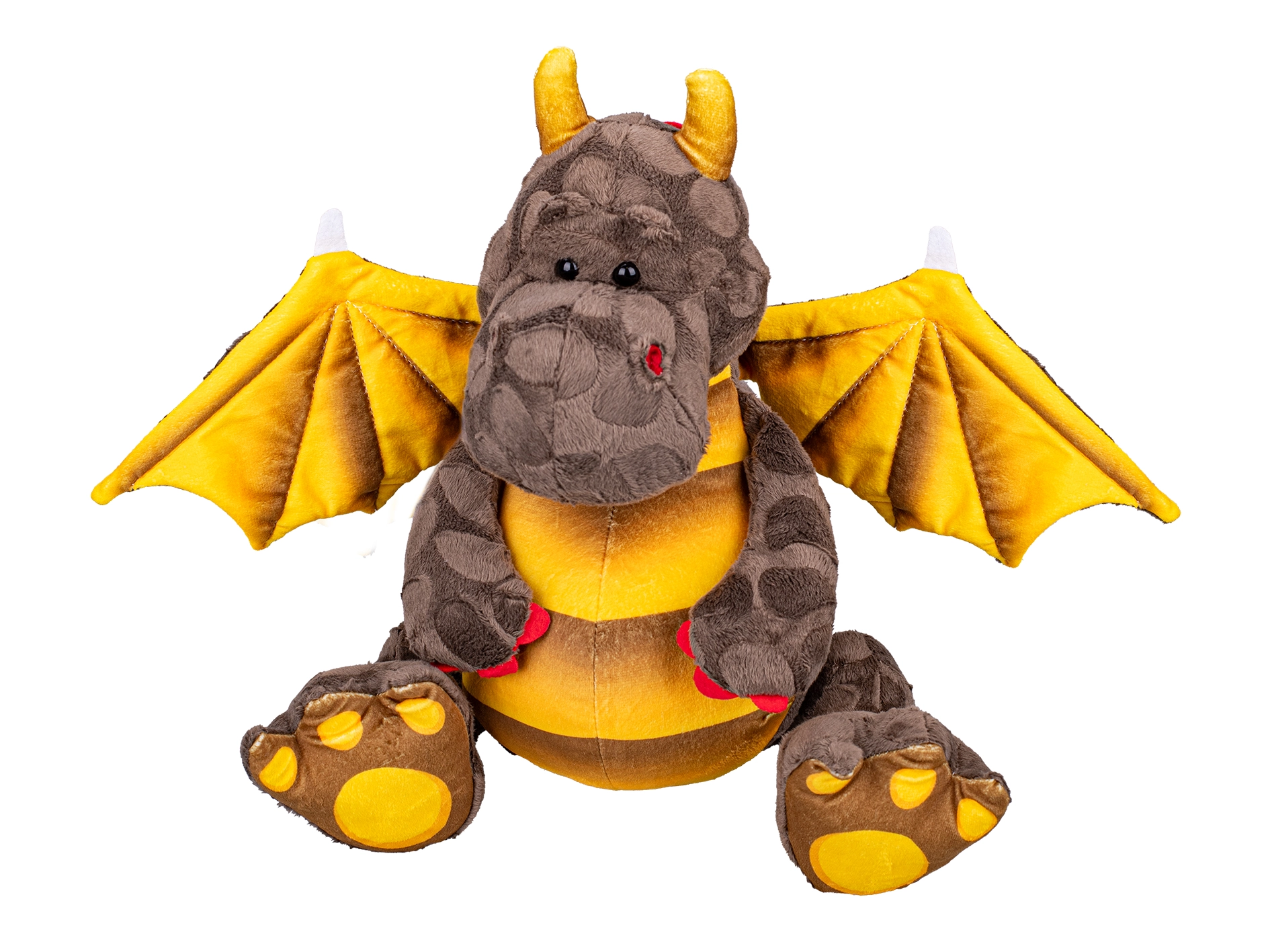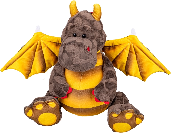 Ez a barna plüss sárkány bájos megjelenésével és selymes felületével gyorsan belopja magát a gyerekek szívébe. Az ülő testhelyzetnek köszönhetően szépen tartja az alakját, és jól mutat a gyerekszobában. A szárnyakban és a nyakban található hajlítható drótok könnyű formázást és játékot tesznek lehetővé, amelyek fejlesztik a finommotorikát és a fantáziát.