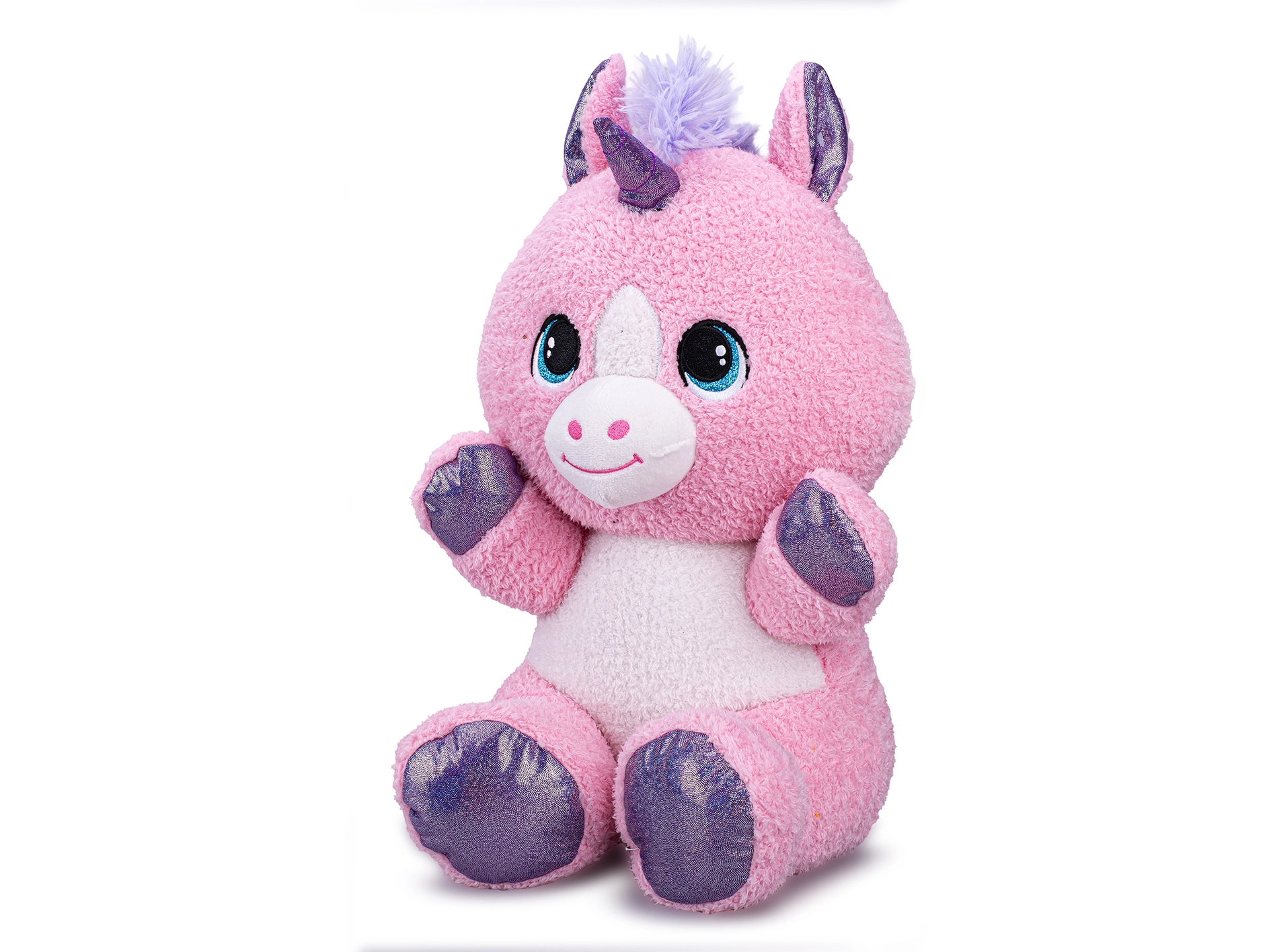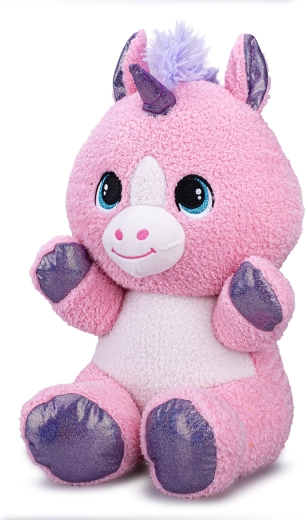 A 37 cm-es, ülő pozíciójú, aranyos plüss unikornis ideális társ babáknak és nagyobb gyerekeknek egyaránt. Puha, selymes anyaggal, születéstől biztonságos kivitelben (0m+) és kényelmes ölelhetőséggel és játékélménnyel érkezik. A minőségi kidolgozásnak és a praktikus tasakos csomagolásnak köszönhetően ajándéknak is kiváló.