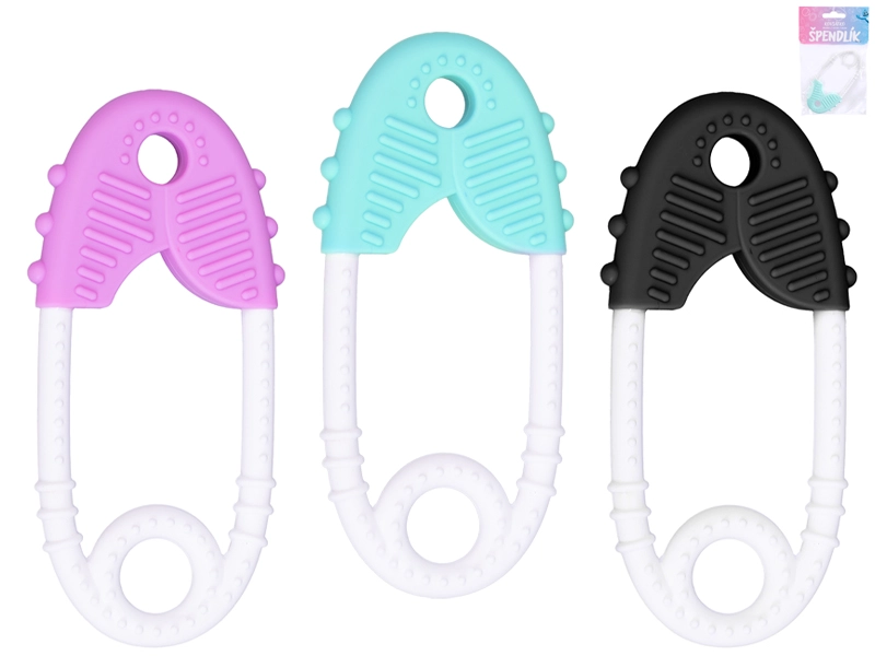 A születéstől használható, biztonsági tű alakú, praktikus szilikon rágóka enyhülést nyújt az érzékeny ínynek, és támogatja a finommotorika fejlődését. A könnyű, ergonomikus forma miatt a legkisebb kezecskék is könnyen megfogják, míg a texturált felület kellemesen masszírozza az ínyt. Biztonságos, rugalmas szilikonból készült, könnyen tisztítható, és rózsaszín, fekete és zöld színben kapható.