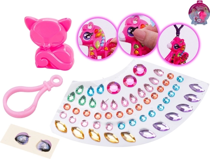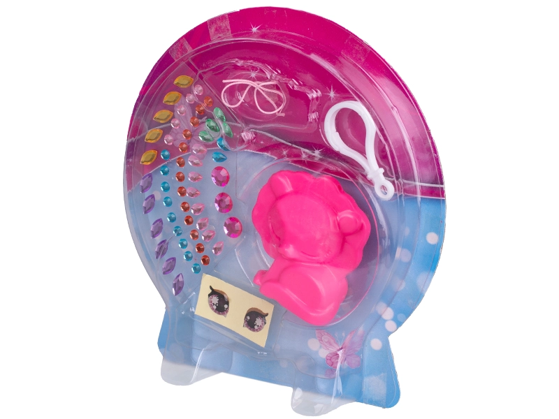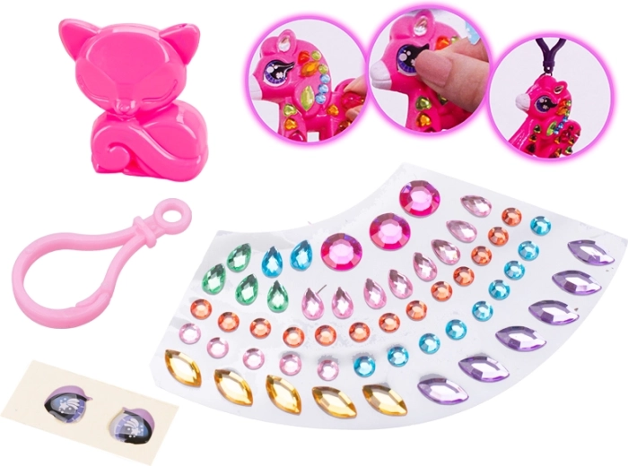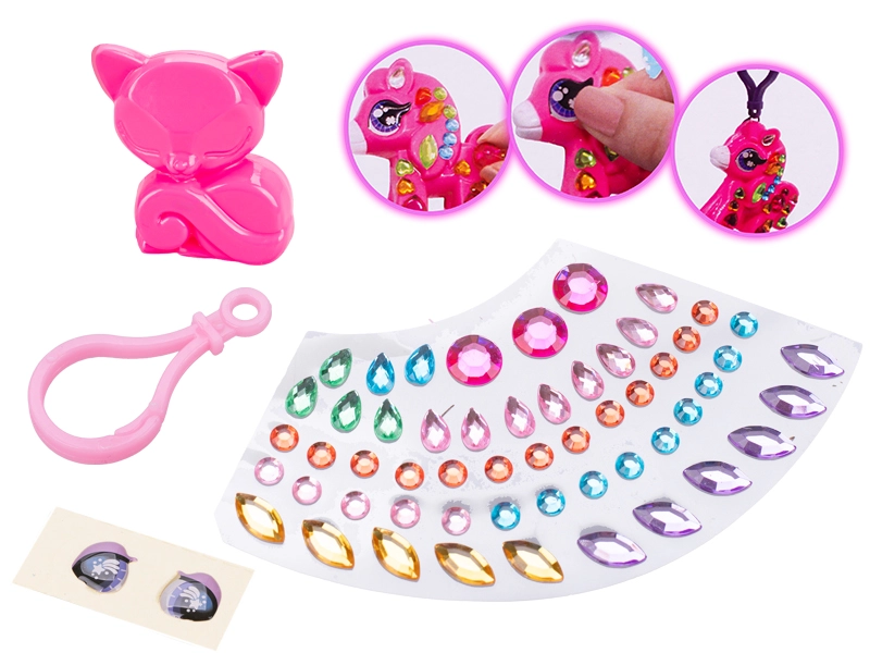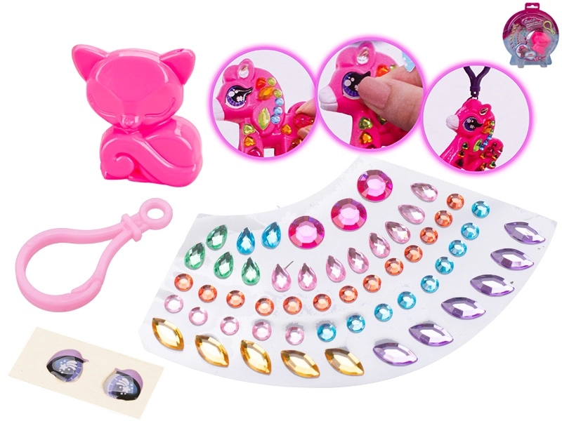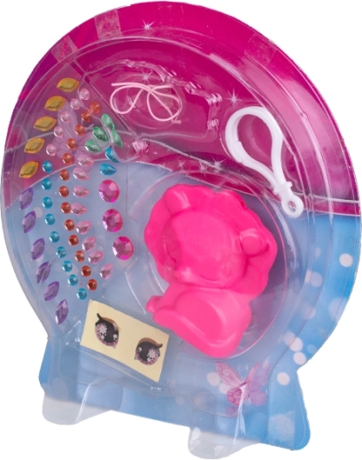 A szettben állatfigura, karabiner, színes strasszok és szemmatricák találhatók – további eszközök nélkül használható.