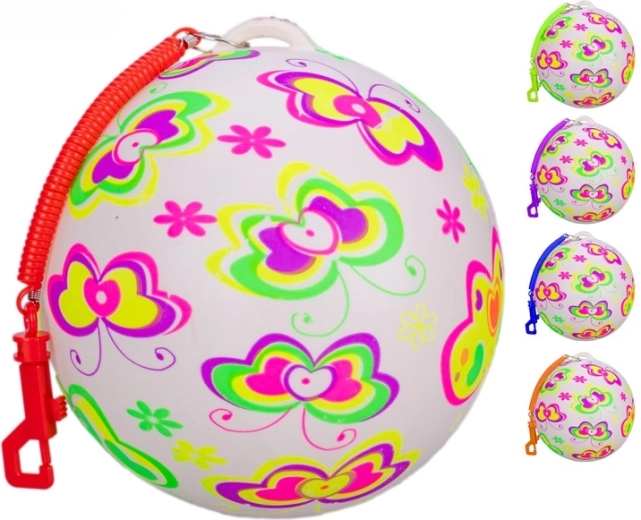 A színes pillangó mintájú ugrálólabda ideális játék az aktív gyerekeknek. A csatlakoztatott rugó lehetővé teszi a könnyű pattogtatást és a labda mozgásának kontrollját, így a gyerekek gyakorolják a reflexet, az egyensúlyt és a szem–kéz koordinációt. A kompakt méretnek köszönhetően remek választás a kertben, a játszótéren és a gyerekszobában való játékra is.