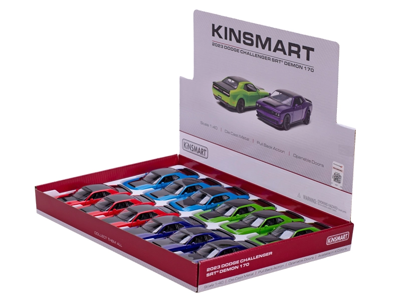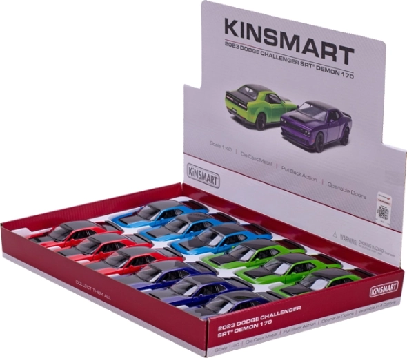 Fedezze fel az amerikai ikon, a Dodge Challenger SRT 170 realisztikus replikáját kompakt kivitelben a Kinsmarttól. A 1:40 méretarányú, 12,5 cm hosszú modell hű karosszérialíneival, nyitható ajtóival és a minőségi fém-műanyag kombinációval nyűgöz le. A visszahúzós szerkezetnek köszönhetően elengedés után lendületesen előre gurul, és sok szórakozást, valamint gyűjtői élményt nyújt.