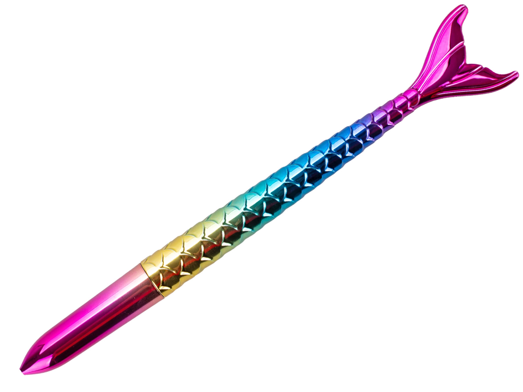 Stílusos, sellőfarok alakú golyóstoll, amely feldob minden tolltartót és íróasztalt. Fényes dizájn, élénk színek és kényelmes írás a 16,5 cm-es hossznak köszönhetően. Tartós műanyagból készült, és ideális 3 éves kortól gyerekeknek és felnőtteknek, akik egy csipetnyi fantáziát szeretnének vinni az írásba.