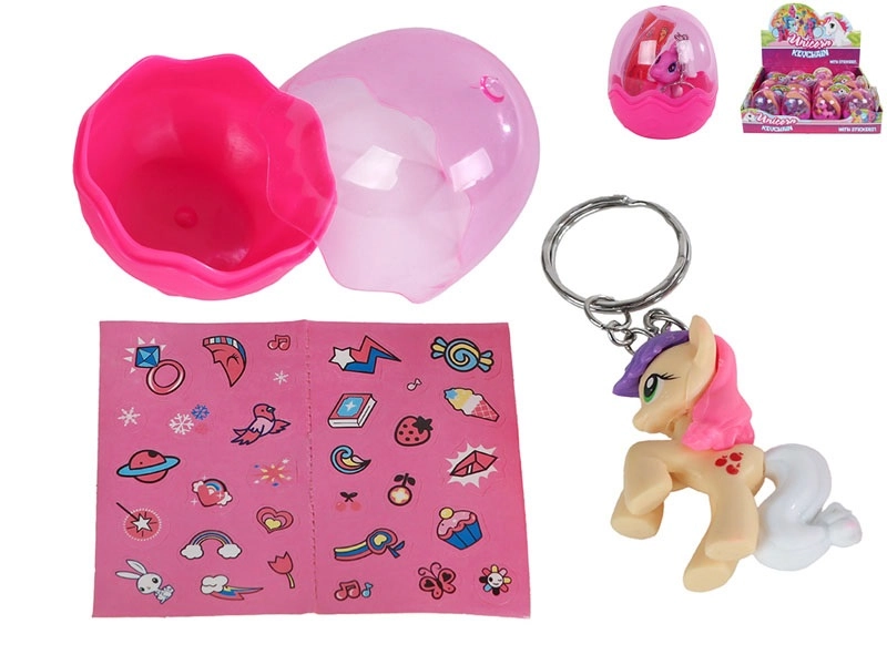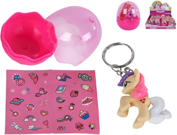A bájos, egyszarvú alakú kulcstartó a varázslatos lények kicsi és nagy rajongóinak egyaránt örömet okoz. Kompakt, 5 cm-es méretet kínál, tartós műanyagból készült, és matricás tojásban érkezik az extra szórakozásért. Hat színváltozatban kapható, így mindenki megtalálhatja a kedvencét. Ideális kis ajándék vagy gyűjthető kiegészítő 3 éves kortól.