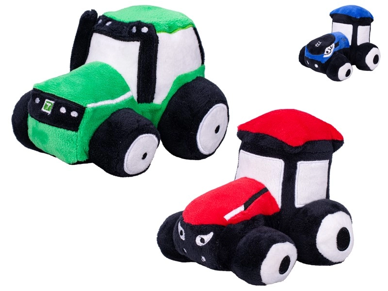 A Kids Globe Farming plüss traktor biztonságos, selymesen puha szórakozást nyújt otthon és útközben egyaránt. Három színváltozatban érhető el – piros, zöld és kék –, és élethű megjelenésével saját farmtörténetek kitalálására ösztönöz.