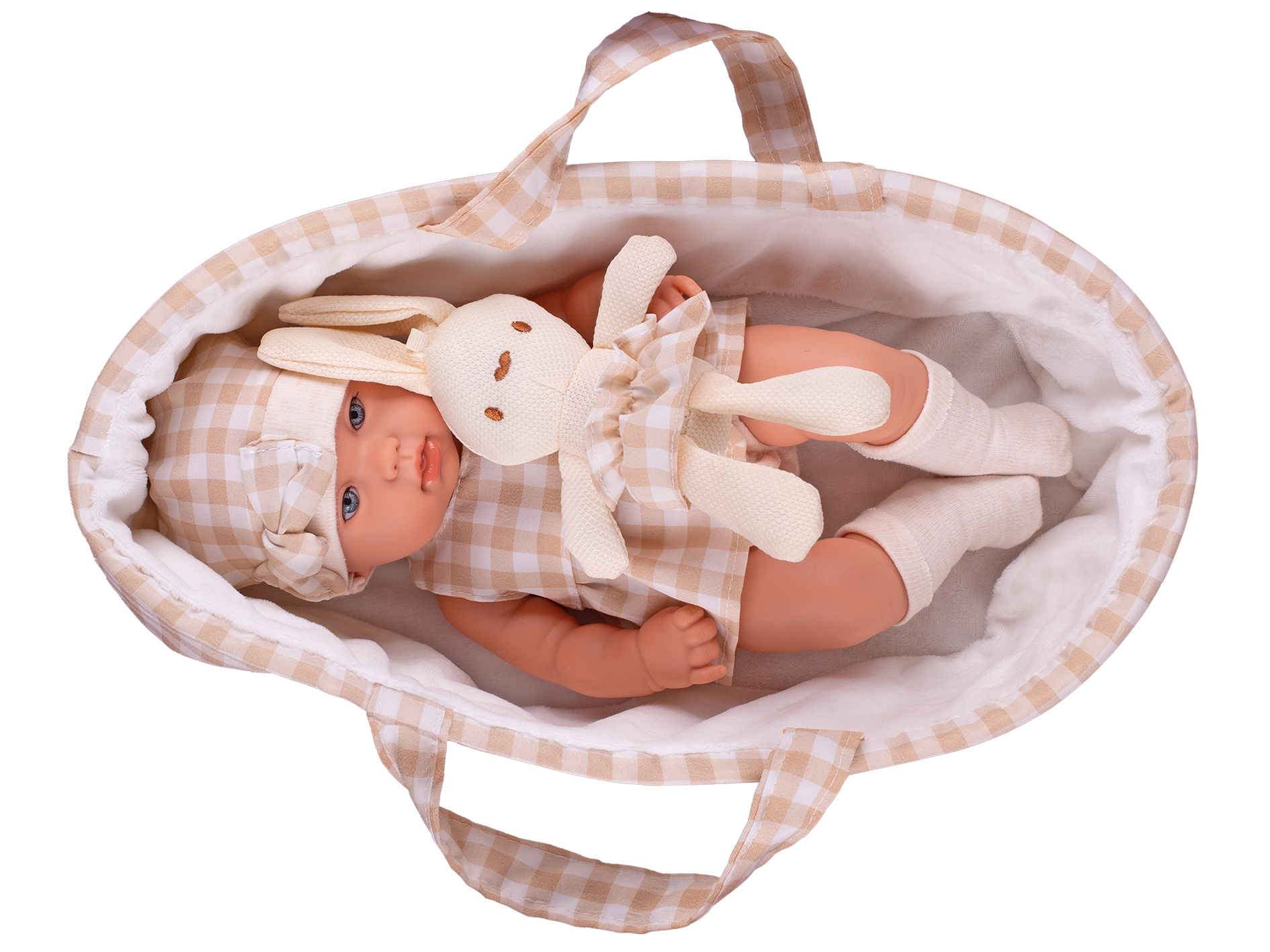 • Teljes készlet: baba, hordozó és plüss nyuszi összeillő bézs árnyalatokban.