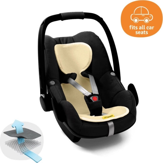Lélegző AeroMoov betét 0–13 kg-os autósülésekhez egész évben kényelmet biztosít a babának. A 3D méhsejt struktúrának köszönhetően maximális légáramlást biztosít, csökkenti az izzadást és fenntartja a kellemes testhőmérsékletet. A betét puha, kellemes tapintású, külső oldala organikus pamutból készült, amely 40 °C-on mosható.