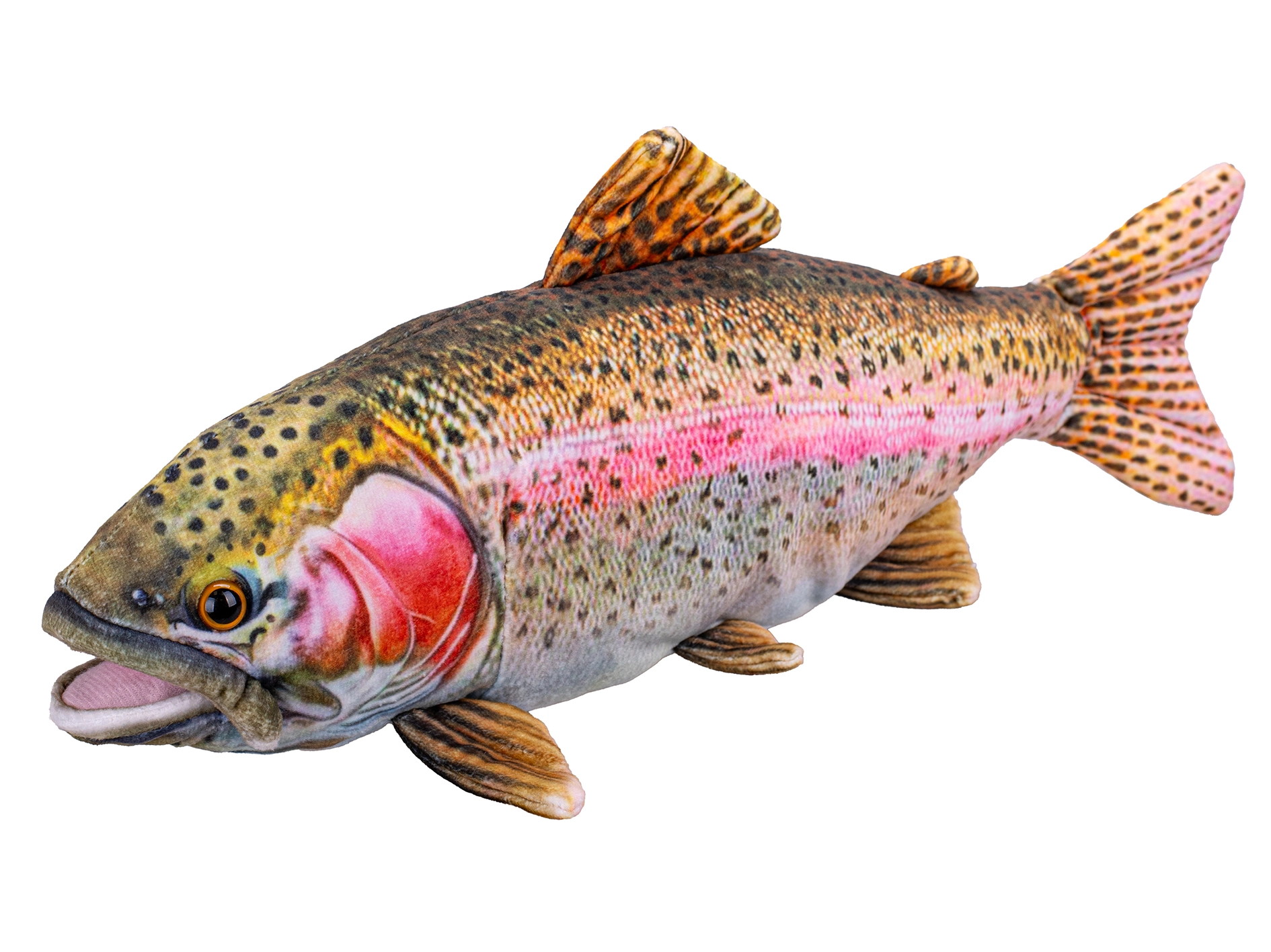 A 38 cm hosszú, aranyos plüss pisztráng a gyerekeknek és a felnőtteknek egyaránt örömet szerez. Valósághű kialakítása, puha és selymes anyaga, valamint újszülöttkortól való biztonságossága ideális játékká és dekorációvá teszi a gyerekszobába.