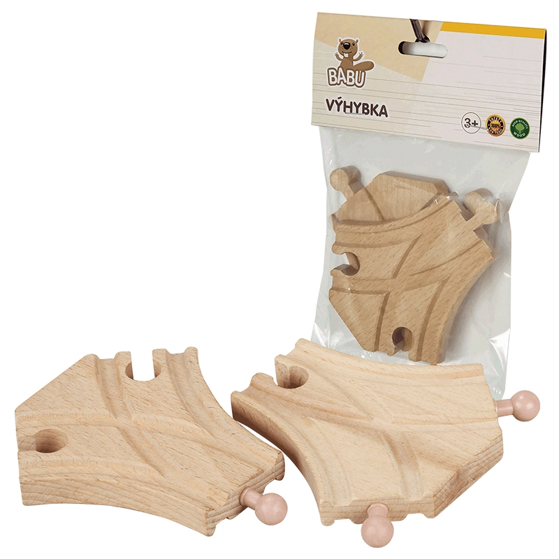 A BABU váltókészlet lehetővé teszi az irány egyszerű változtatását és új pályakombinációk létrehozását. A fa kivitel tartós, környezetbarát és biztonságos a mindennapos játékhoz. Kompakt, 9,5 cm-es hossza révén tökéletesen illeszkedik a legtöbb fa vonatpályához.