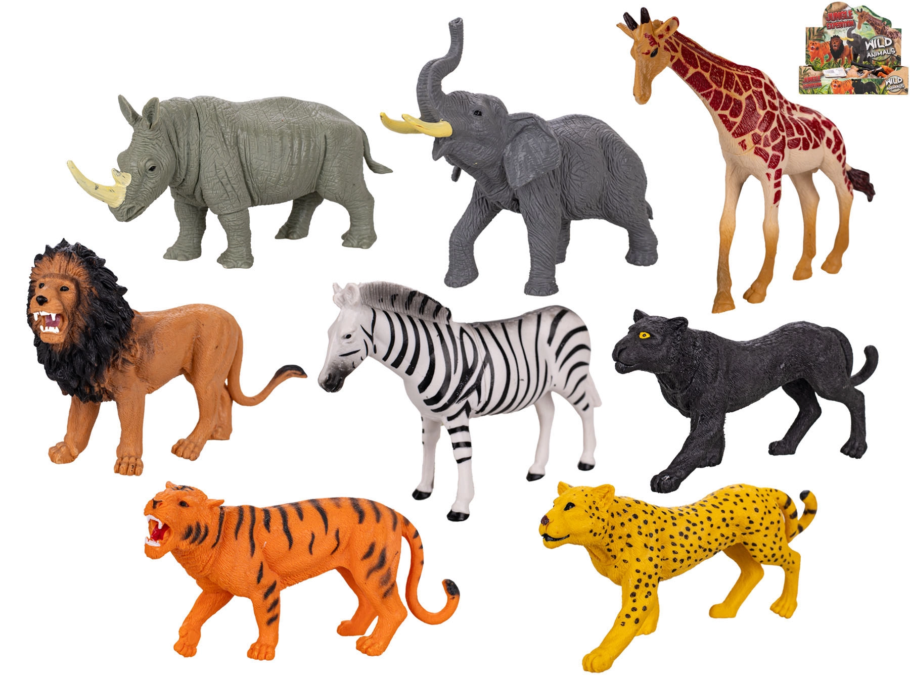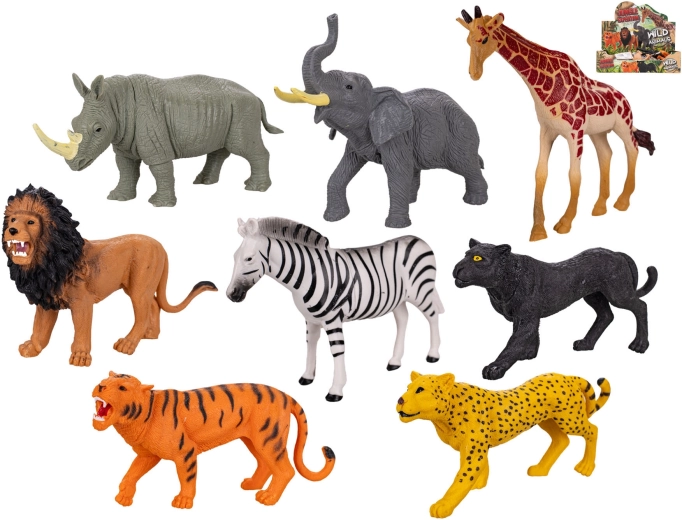 • 8 élethű figura: zebra, zsiráf, tigris, jaguár, leopárd, orrszarvú, oroszlán és elefánt
