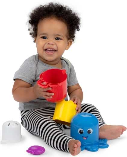A poharak ideálisak kádban és homokban – alkalmasak áttöltésre, szűrésre és formázásra. A barátságos dizájn és a ragyogó színek támogatják a vizuális stimulációt és a színtanulást, míg az Opus polip színváltása meleg vízben meglepetést és ok-okozati összefüggések megértését hozza.