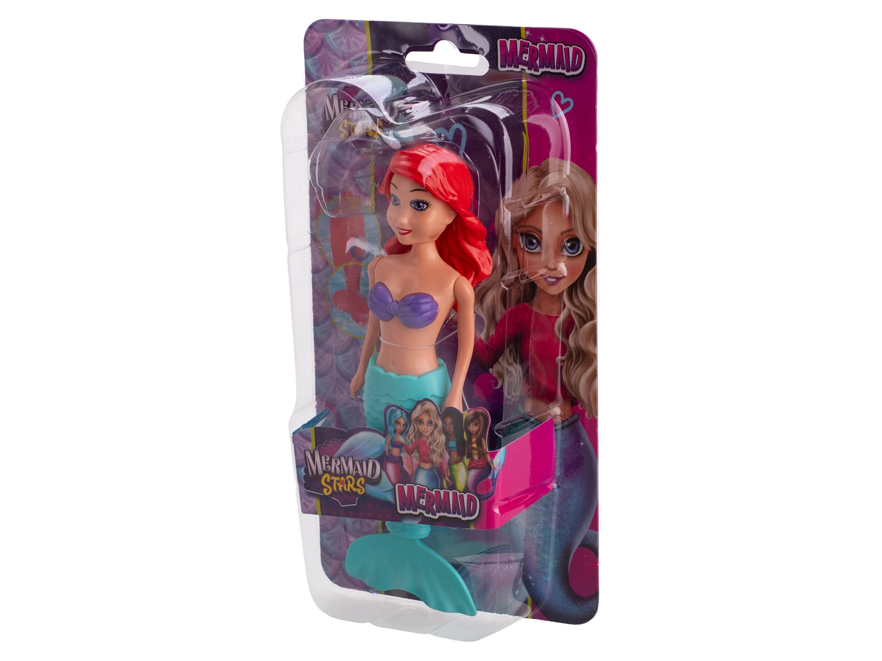 Válasszon a három hajszín közül – vörös, fekete vagy szőke – és a különböző farokszín-kombinációk közül (lila/narancs, lila/kék, narancs/kék). A baba tartós műanyag anyagból készült, ezért bírja a mindennapos játékot és a vízzel való érintkezést is.