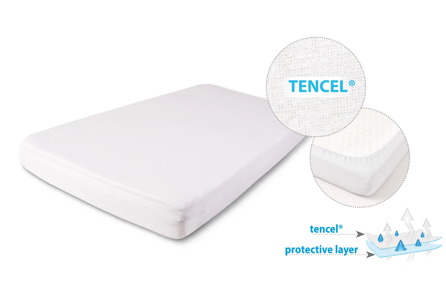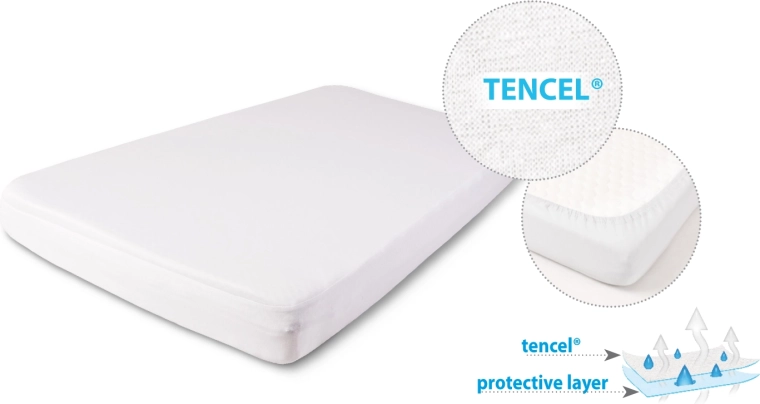 Praktikus és kényelmes Tencel szálból készült lepedő vízálló és egyben lélegző membránnal, amely megvédi a matracot a nedvességtől és a foltoktól. A körben bevarrt gumírozásnak köszönhetően tökéletesen a helyén marad, gyengéd a bőrhöz, antiallergén, és alkalmas gyermekágyakhoz.
