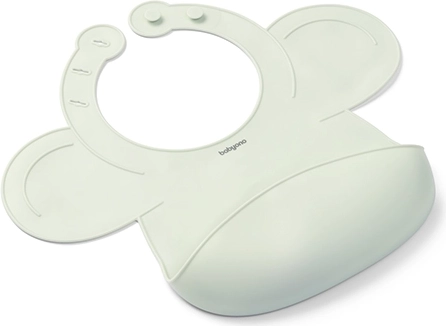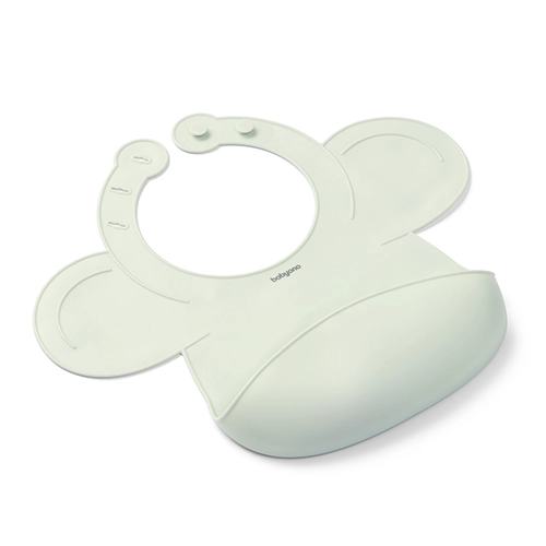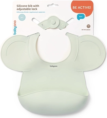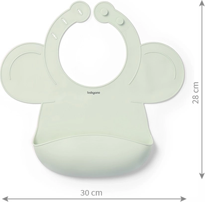 A praktikus, zsályazöld Babyono szilikon előke tisztaságot biztosít minden etetésnél. A mély morzsafogó zsebnek, a könnyű kialakításnak és az állítható záródásnak köszönhetően kényelmesen illeszkedik, és hatékonyan védi a ruházatot. Mosogatógépben mosható, vagy gyorsan leöblíthető a csap alatt.