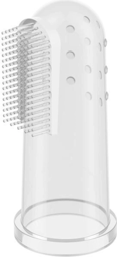 A BABYONO ujjra húzható fogkefe puha, biztonságos szilikonból készült, ideális az újszülöttek és csecsemők mindennapi szájhigiéniájához. Az egyik oldalon lévő sörték kíméletesen segítenek eltávolítani a szennyeződéseket az első fogakról, míg a másik oldalon lévő finom kiemelkedések kiválóak a ingerlékeny íny masszírozására a fogzás időszakában.
