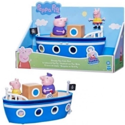 A szett része Peppa és Nagypapa malac figurája, amelyeket a felső fedélzetre vagy a belső térbe is el lehet helyezni. A levehető felső rész megkönnyíti a játékot, fejleszti a finommotorikát és a képzeletet. A biztonságos műanyag kivitel és a lekerekített formák a gyerekek kezéhez igazodnak.