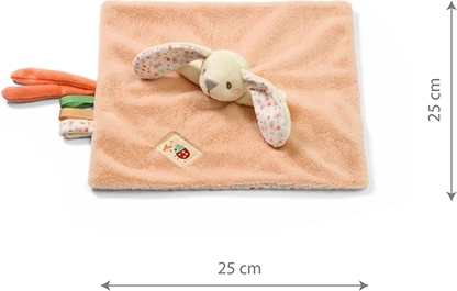 A Baby Bunny 2 az 1-ben nyunyóka és takaró alvás és ébrenlét közben is a megnyugtatást és a biztonságot szolgálja. A jellegzetes 3D pöttyökkel ellátott, puha minky pamut anyag gyengéd a bőrhöz, és egyben érintésre ösztönöz. A barátságos állatfigura biztonságérzetet ad, és a gyerekek kedvelt ölelgetnivaló társává válik.