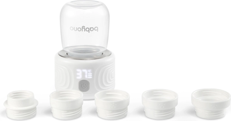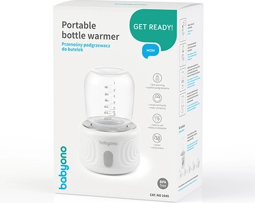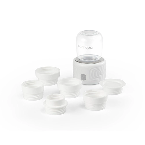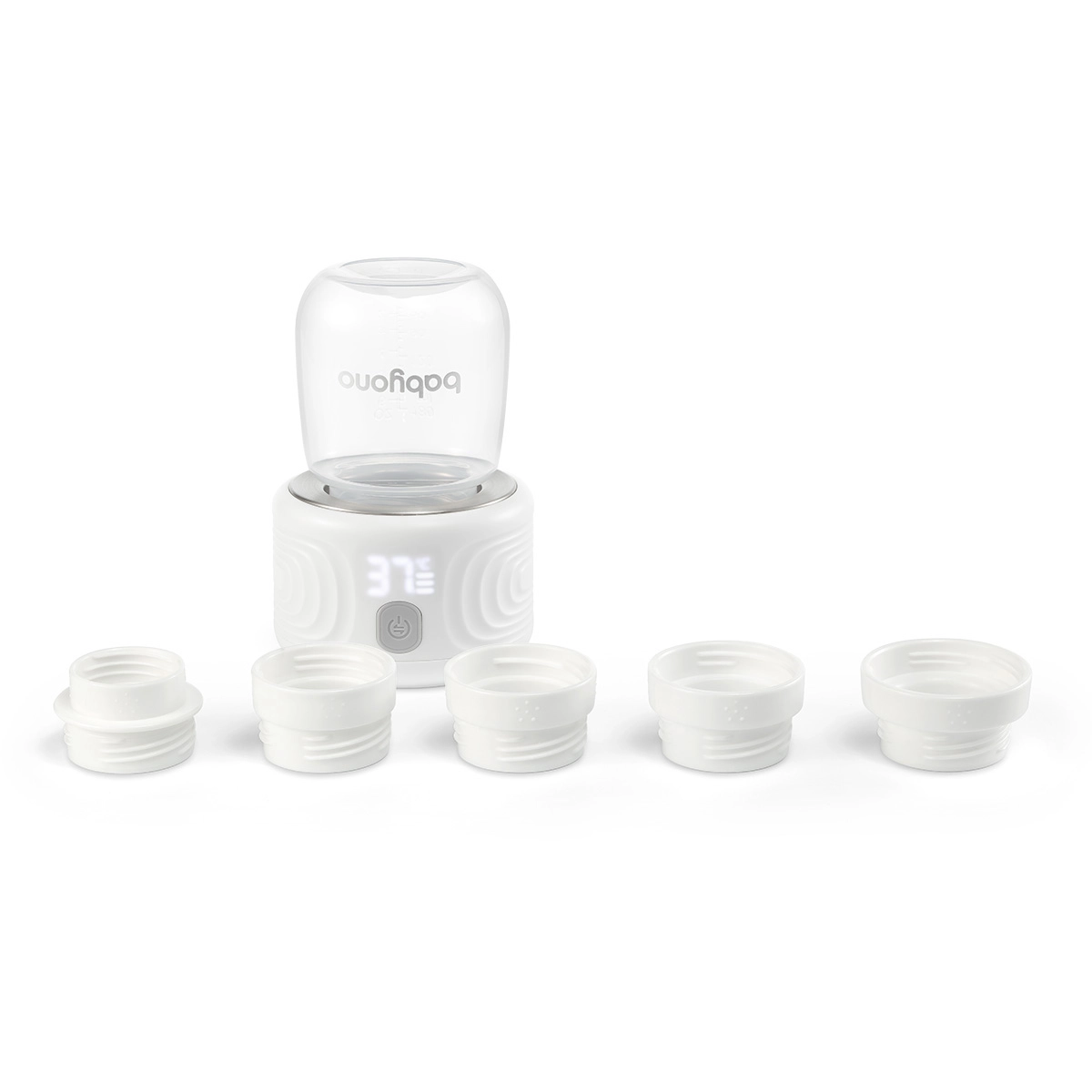 A doboz mindent tartalmaz, amire szüksége lehet: egy 180 ml-es üveget, öt cserélhető adaptert a népszerű üvegmárkákhoz és egy USB‑C kábelt. Könnyű és kompakt kialakításának köszönhetően elfér kézitáskában, pelenkázótáskában és babakocsiban is, csendes működése pedig nem zavarja a baba álmát.