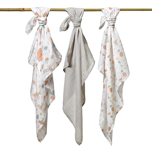A praktikus, 3 darabos szett két, pasztell állatos és lufis mintájú, valamint egy egyszínű szürke pelenkát tartalmaz, így könnyedén harmonizál a baba felszerelésével. A pelenkák könnyűek, gyorsan száradnak és egyszerűen tisztíthatók. A puhaság megőrzése érdekében ügyeljen a kímélő mosásra a gyártó ajánlásai szerint.