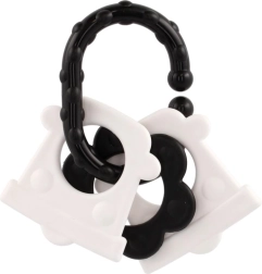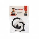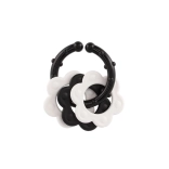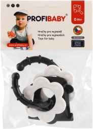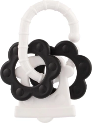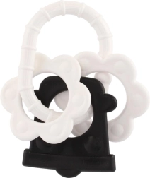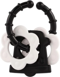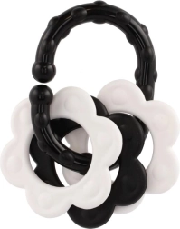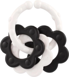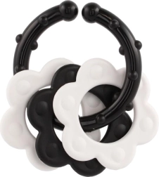 Fedezze fel a kifejezetten a legkisebbeknek tervezett rágókákat – a kontrasztos fekete-fehér kivitel felkelti a baba figyelmét és segíti a vizuális észlelés stimulálását. A praktikus fogantyúnak köszönhetően a kis kezek könnyen megfogják, a csörgő pedig finom hangingerrel szolgál.