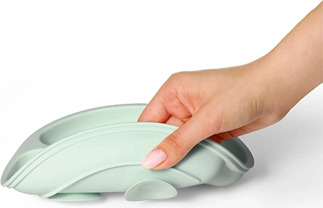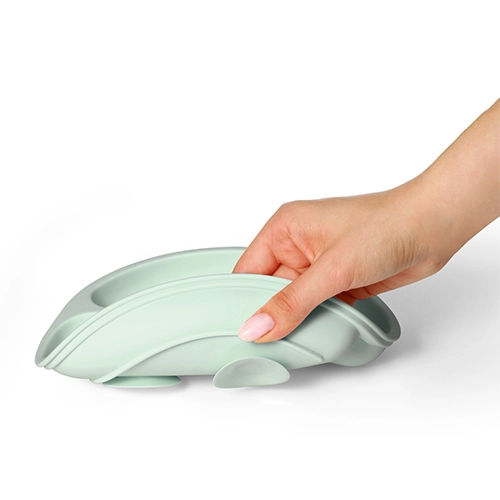 A tányér magas minőségű, egészségre ártalmatlan szilikonból készül, kellemes tapintású, tartós és könnyen karbantartható – mosogatógépben mosható és mikrohullámú sütőben előmelegíthető. Ergonomikus formája támogatja a finommotorika fejlődését és az önálló evés természetes elsajátítását.