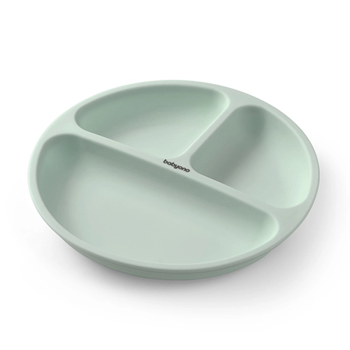 Fedezze fel az okos étkezést a BabyOno gyermekszilikon tányérral. A nagy tapadókorong erősen tart a sima felületen, segít megelőzni a kiömlést vagy a tányér lelökését. A három rekesz elkülöníti az egyes adagokat, és megkönnyíti az új ételek bevezetését az étrendbe.