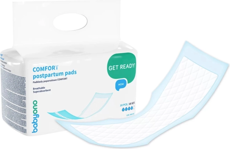 A BabyOno Comfort szülés utáni betéteket a gyermekágy idején maximális biztonságra és puhaságra tervezték. Ötvözik a légáteresztő felső réteget a többrétegű nedvszívó maggal, amely gyorsan felveszi a folyadékot, belül rögzíti, és segít megelőzni a kellemetlen szagokat. A anatómiai formának és az ultravékony profilnak köszönhetően még testhezálló ruházat alatt is diszkrétek.