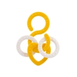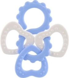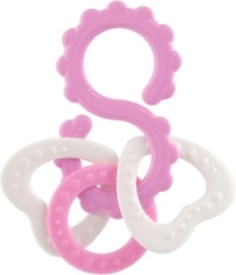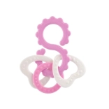 A rágóka ergonomikus formájának köszönhetően könnyen megfogható a legkisebb gyermekek számára is.