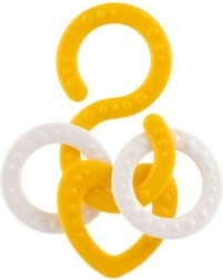 Megkönnyebbülést és szórakozást nyújt a kicsinyeidnek ezzel a színes rágókával. Könnyen megfogható és ideális az íny fájdalmának enyhítésére a fogzás alatt.