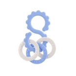 A rágóka felülete különböző textúrákkal készült, amelyek segítik az íny stimulálását és enyhítik a fogzás okozta fájdalmat.
