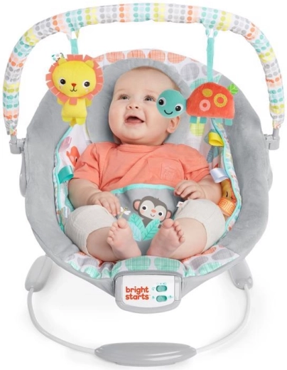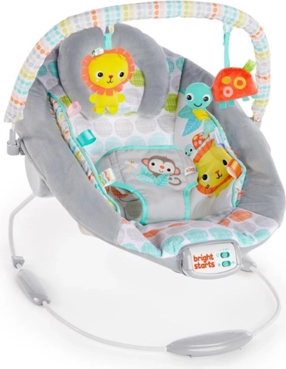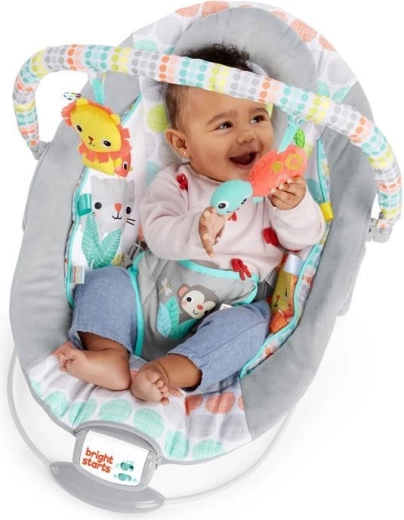 A Bright Starts Whimsical Wild hinta a mindennapi kényelemre és szórakozásra készült. A puha párnázás, a levehető fejtámasz és az integrált újszülött betét megfelelő alátámasztást biztosít a babának. A megnyugtató vibráció és a 7 dallam állítható hangerővel segít megnyugtatni és elaltatni, míg a 15 perces időzítő kíméli az elemeket.