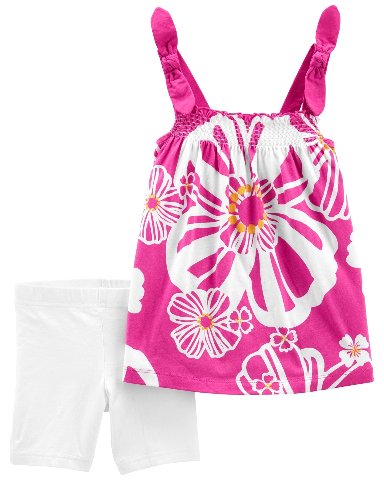 Aranyos lány nyári szett ujjatlan tunikával és rövid leggingsszel, kellemesen puha pamutból. Kényelmes viseletet, lazább szabást és trendin virágos dizájnt kínál lila árnyalatokban. Ideális a meleg nyári napokra a könnyű anyagoknak és a kényelmes rugalmas deréknak köszönhetően.