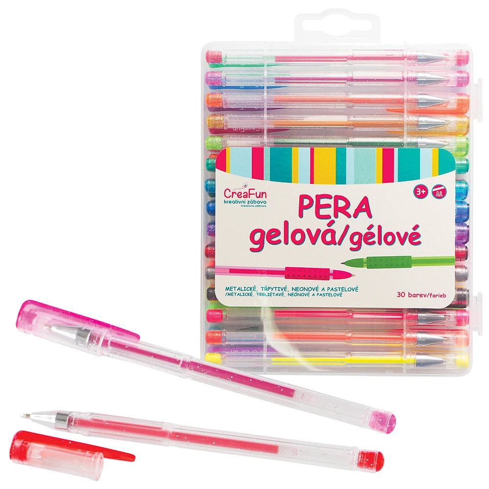 Fejlessze a gyerekek kreativitását a CreaFun készlettel, amely 30 ragyogó zselés színt kínál rajzoláshoz, íráshoz és díszítéshez. A tollak folyamatos, telt tintafolyást, kényelmes fogást biztosítanak, és ideálisak finom részletekhez és kreatív projektekhez otthon és az iskolában is.
