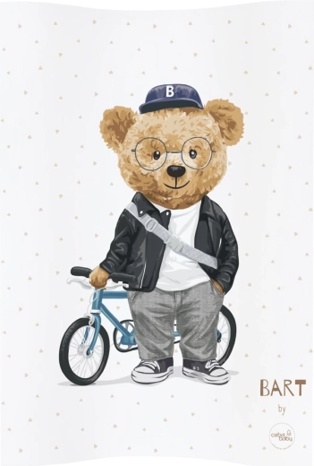 Puha és biztonságos, kétszélű pelenkázó alátét 48 × 70 cm méretben, amely kényelmet nyújt a mindennapi babagondozás során. A profilozott, megemelt széleknek, a tanúsított PVC fóliának és a könnyen tisztítható felületnek köszönhetően ideális választás komódra vagy más stabil felületre. A bájos Fluffy Puffy macik motívum otthonos hangulatot teremt minden gyerekszobában.