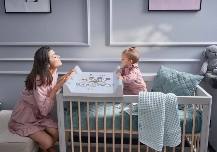 Fedezze fel az időtlen DISNEY dizájnt a mindennapi babaápolást segítő praktikus kialakítással. A Ceba Baby Comfort pelenkázó lap MINNIE & MICKEY motívummal, elegáns kék kivitelben kemény betéttel megerősített, így biztonságosan elhelyezhető a kiságyon. A legfeljebb 3 cm vastag puha töltet maximális kényelmet nyújt a babának pelenkázás közben.