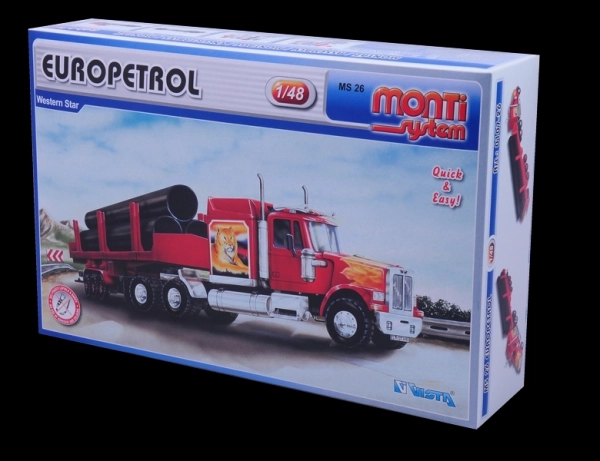 Építsen valósághű Western Star kamiont Europetrol motívummal ragasztó és festés nélkül. A Monti System építőkészlet 1:48 méretarányban gyors és szórakoztató összeszerelést, minőségi kidolgozású alkatrészeket és remek végeredményt kínál kicsiknek és nagyoknak egyaránt. Ideális ajándék 8 éves kortól és minden teherautó-modell rajongónak. Egyszerű összeszerelés ragasztó nélkül, 1:48 méretarány, 8 éves kortól ajánlott.