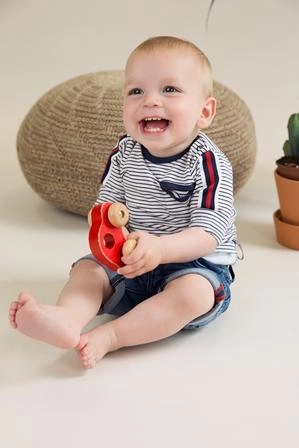 A magas pamuttartalmú, kellemes tapintású kötött anyag gyengéd a gyerek bőréhez, és egész napos komfortot biztosít.