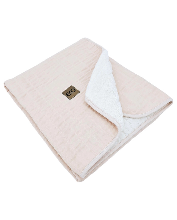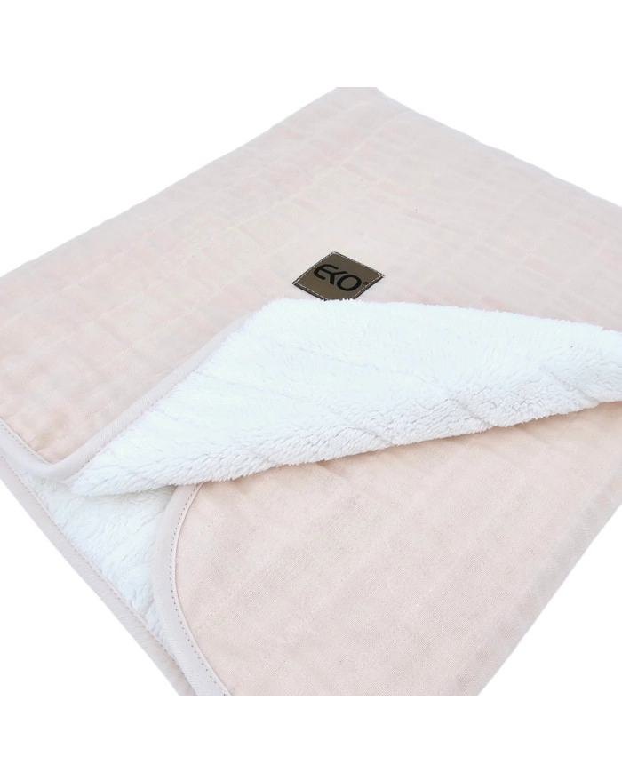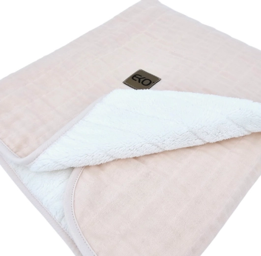 Ez az EKO muszlin takaró finom rózsaszín árnyalatban a külső oldalon természetes 100% pamutot, belül pedig meleg műszőrmés (polár) bélést tartalmaz 100% poliészterből. A hipoallergén szálból készült könnyű, mégis hatékony bélés kellemes meleget ad felesleges nehezedés nélkül. Egész évben jól használható – otthon, útközben és séták alkalmával.