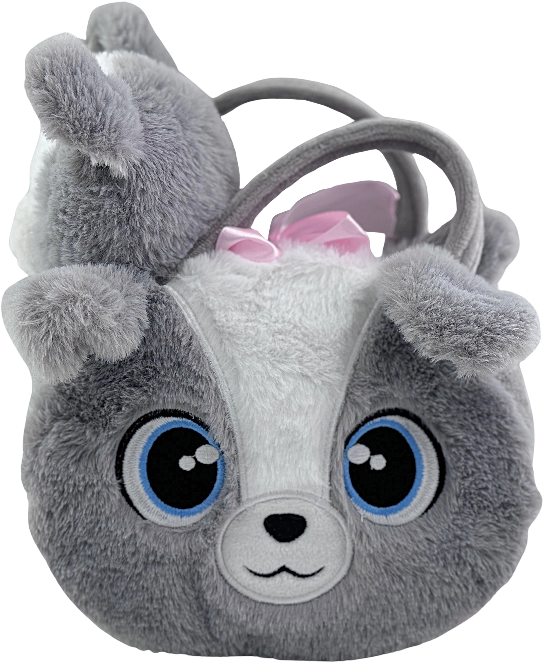 Fedezze fel a bájos plüss kézitáska varázsát Dante kutyussal, amely minden gyermeket megörvendeztet. A táska könnyű, kellemes tapintású, és a hipoallergén plüss révén érzékeny bőrre is alkalmas. Belül egy puha kiskutya bújik meg, amely biztonságérzetet és megnyugvást nyújt az új helyzetekben.