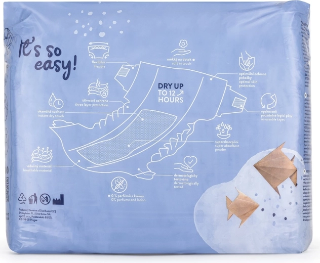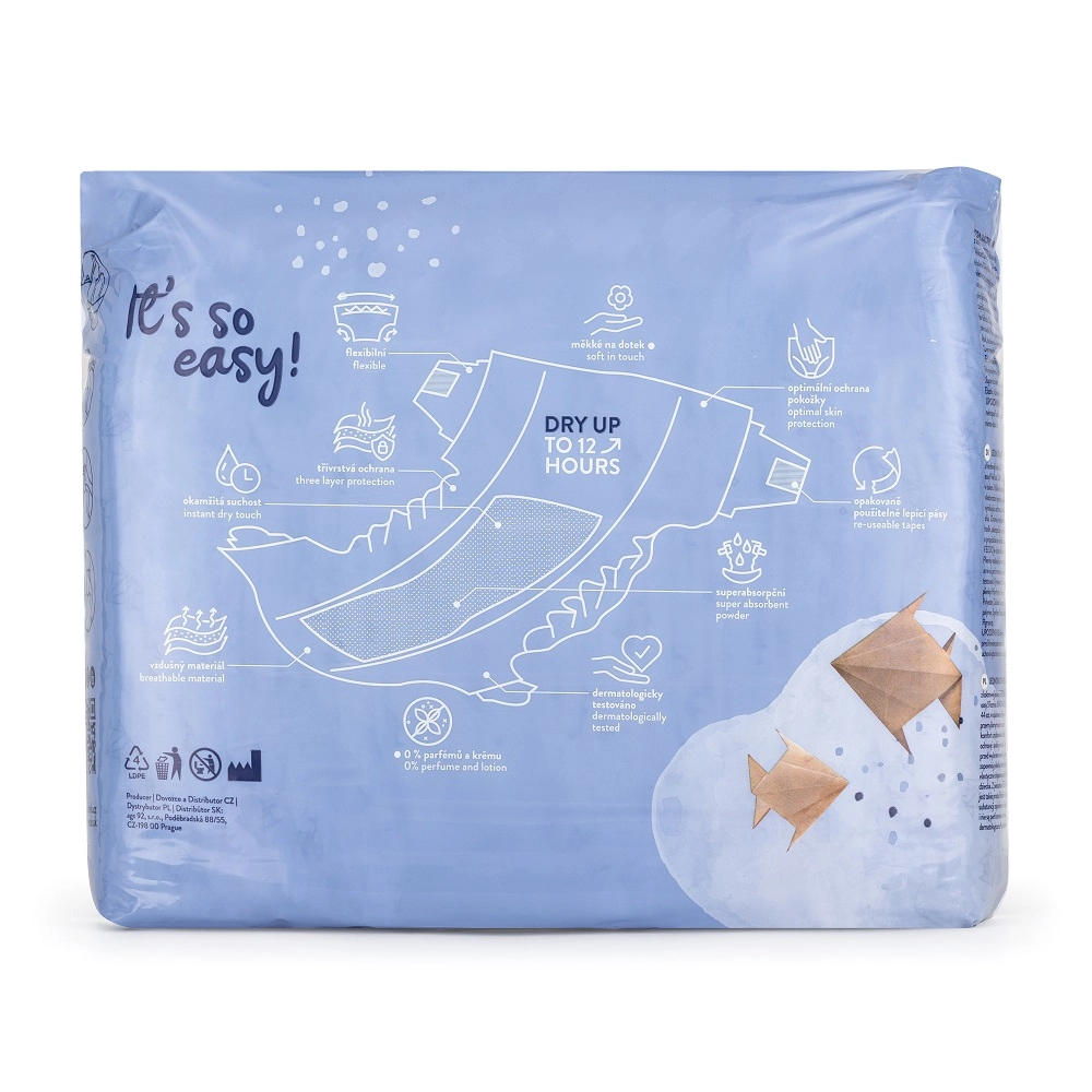 A rugalmas derékrésznek, a lábaknál található puha mandzsettáknak és az erős, újrazárható ragasztós füleknek köszönhetően a pelenka rugalmasan alkalmazkodik a gyermek pocakjának és combjainak formájához. A pelenkák dermatológiailag teszteltek, illat- és latexmentesek, így érzékeny bőrre is alkalmasak.