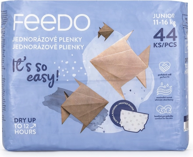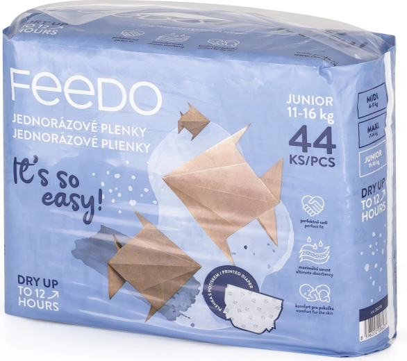 A FEEDO Junior 5 pelenkákat úgy tervezték, hogy egész napos száraz érzetet, szabad mozgást és megbízható védelmet nyújtsanak. A szuperabszorbens mag többrétegű rendszerrel oszlatja el a folyadékot a teljes felületen, és akár 12 órán át belül tartja. Légáteresztő struktúrája segíti a bőr szellőzését és csökkenti az irritáció kockázatát.