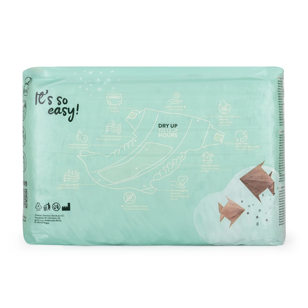 Rugalmas derékrész, elasztikus szegélyek és többször használható fülek alkalmazkodnak a kis testalkathoz, és megakadályozzák a szivárgást játék és alvás közben is.